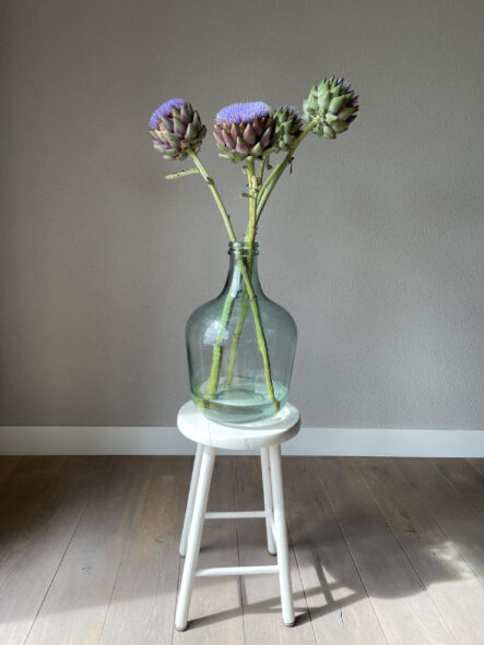 De artisjok bloem dient schuin afgesneden te worden en vervolgens een week op water (liefst aangevuld met een druppel bleek en wat suiker) gezet te worden. Om beschimmeling te voorkomen moet na een week het water uit de vaas verwijderd worden.
