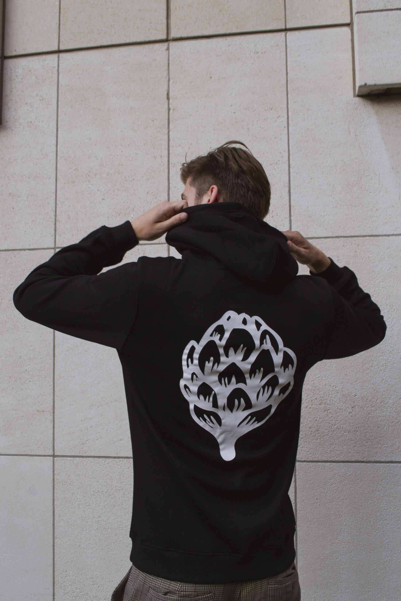 De Artysjokkenclub hoodie, als je hem eenmaal aan hebt wil je hem eigenlijk niet meer uit doen. Hij zit super comfortabel en met deze gigantische sjok op je rug maak jij helemaal de blits.