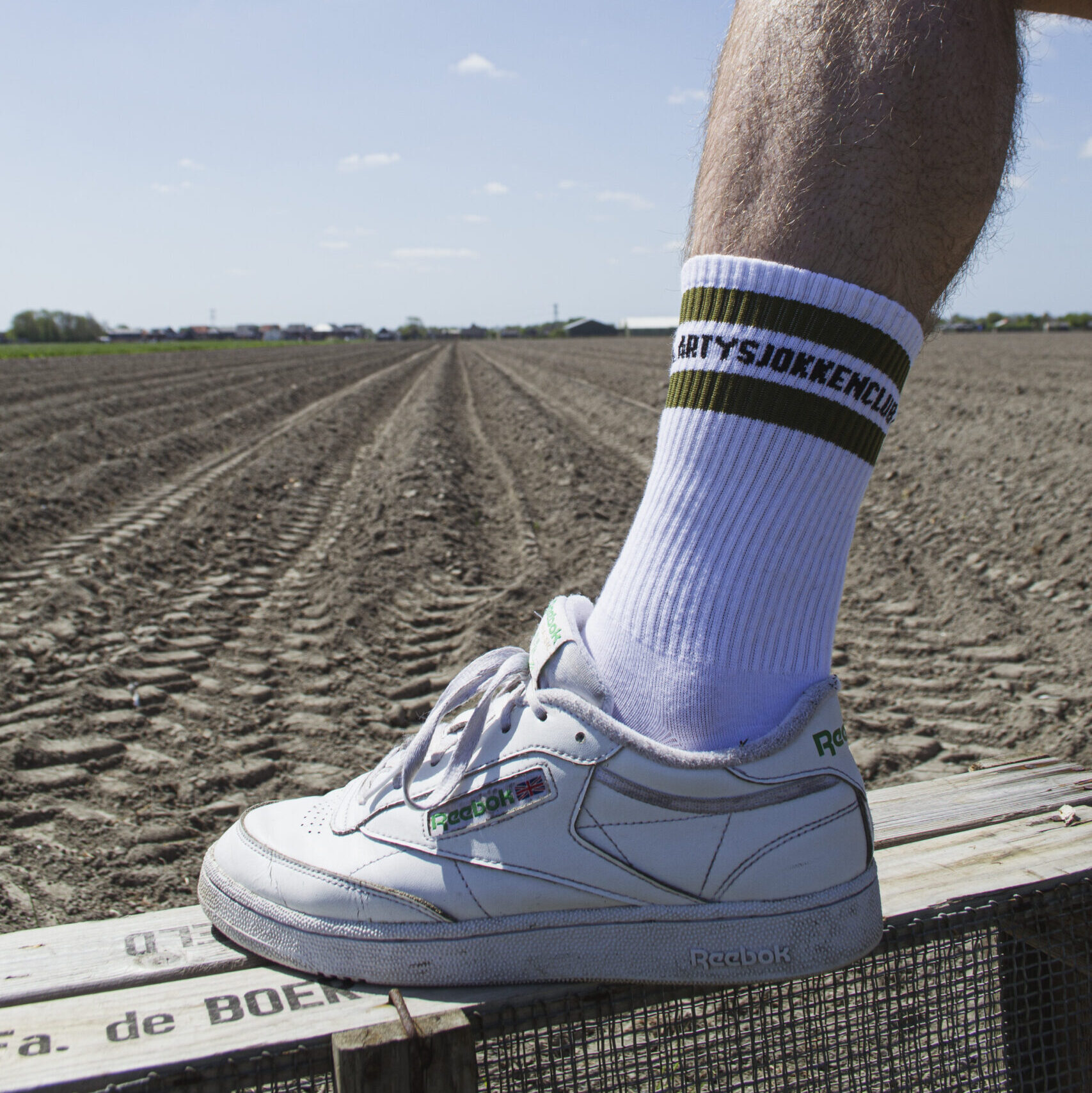 Deze witte sportsok met groene strepen is een hele modebewuste keuze. Veel hipper dan dit kun je het op dit moment niet krijgen. Geschikt voor dagelijks gebruik en in combinatie met wielrenfiets, hardloopschoen of tennisracket.